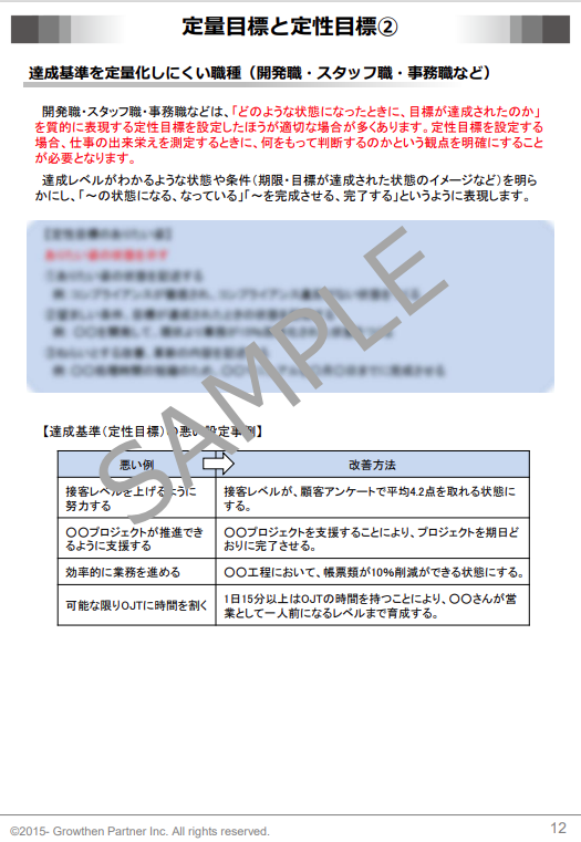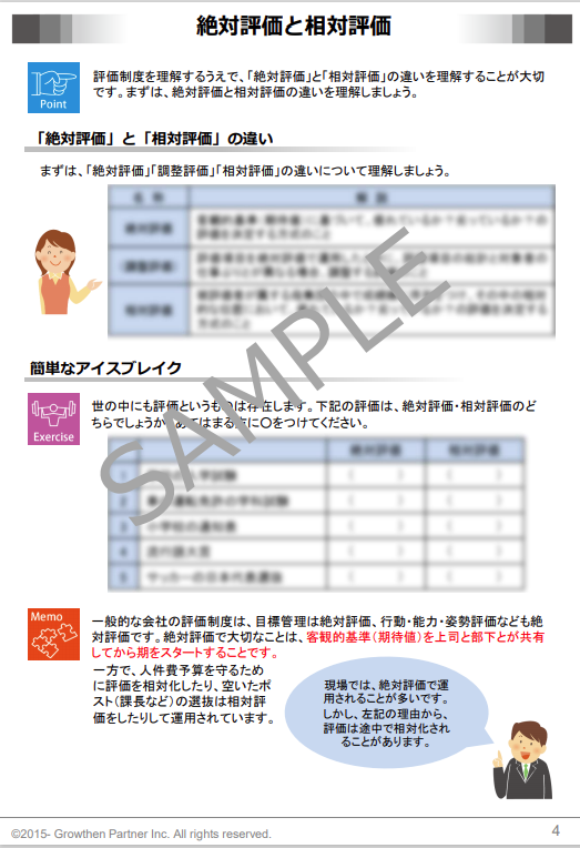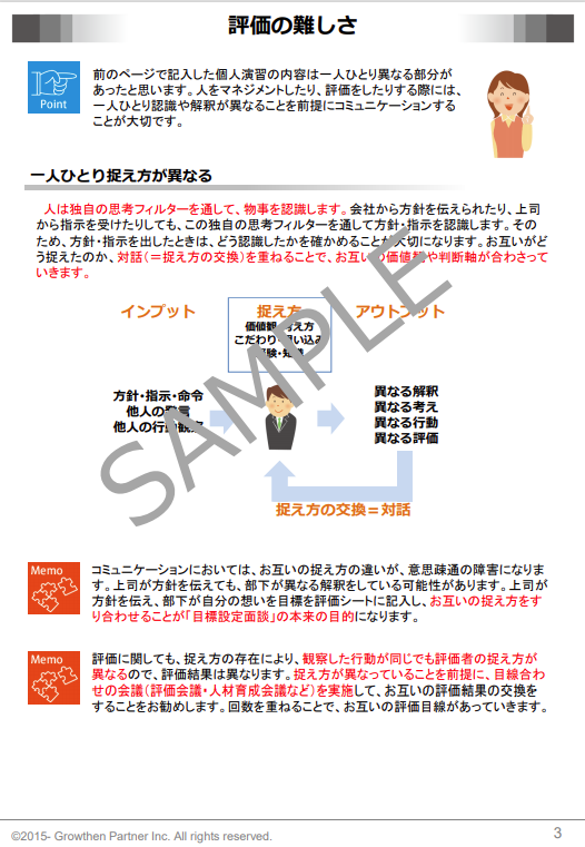 社内研修支援サービス「評価者研修(目標設定編)」のサンプルテキストです。