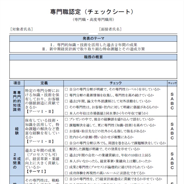 ※Zipファイルに、専門職・スペシャリストコース導入のポイント(PDF)と専門職認定審査シート(Excel)が入っています。