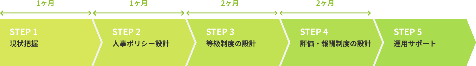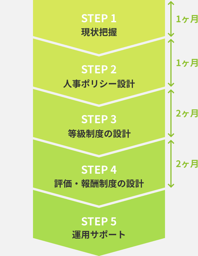 雇用形態・社員のキャリア・人件費管理などの側面から最適なコース・等級制度を設計します。 |