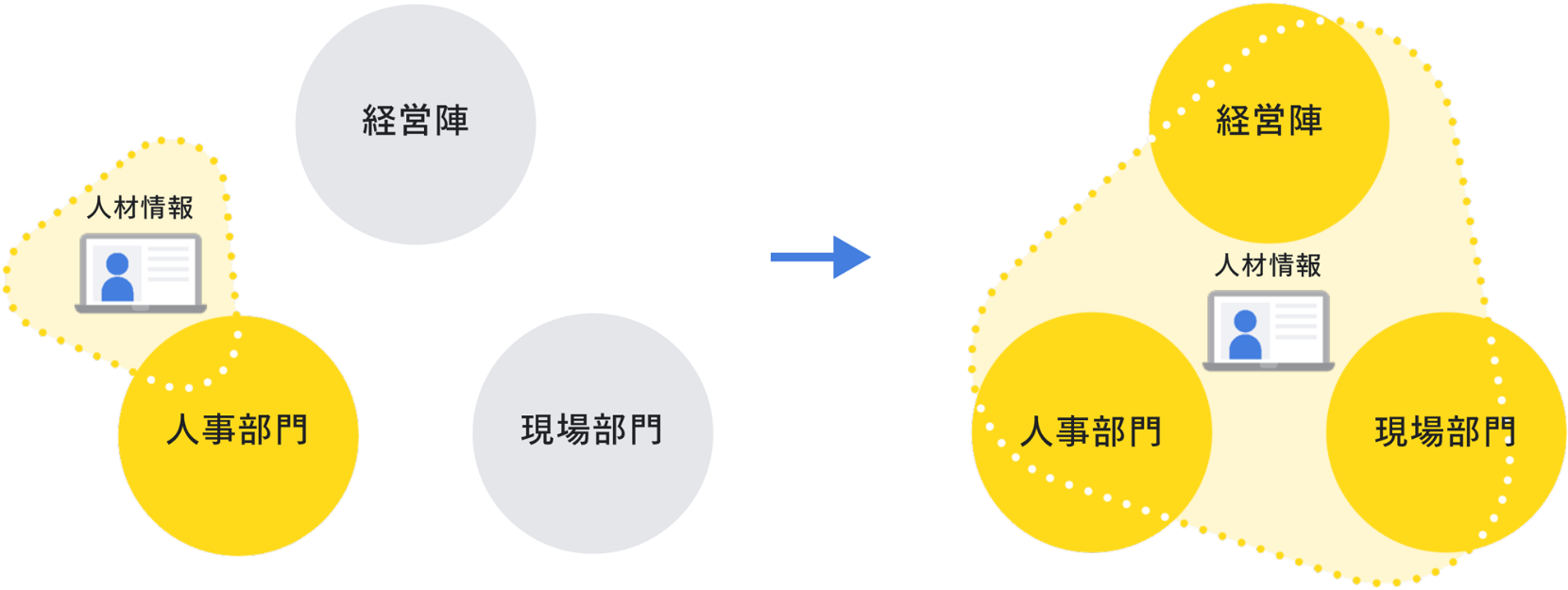 組織に眠っている人材情報をオープンにし、人事だけではなくそれを経営や現場と共有する。
